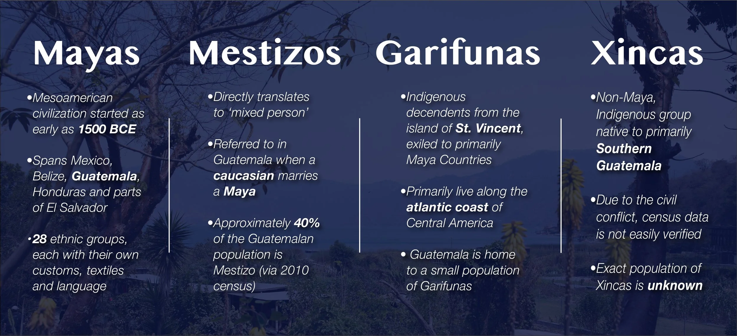 ‘The People,’ Garcia says, are made up of four groups: the Mayas, Mestizos, Xincas and Garifunas.