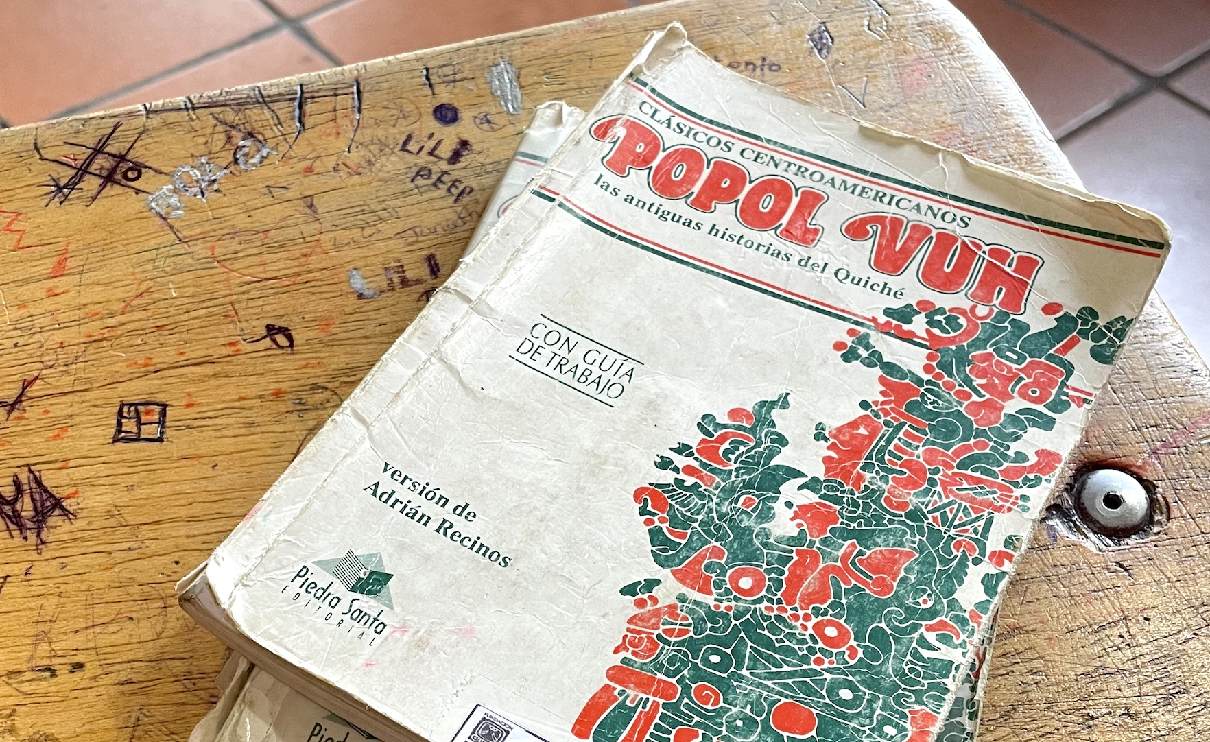 The Popol Vuh, the creationist text of the Mayas and has been translated from the original K’iche’ language over a dozen times. Photo by Aidan Sheedy